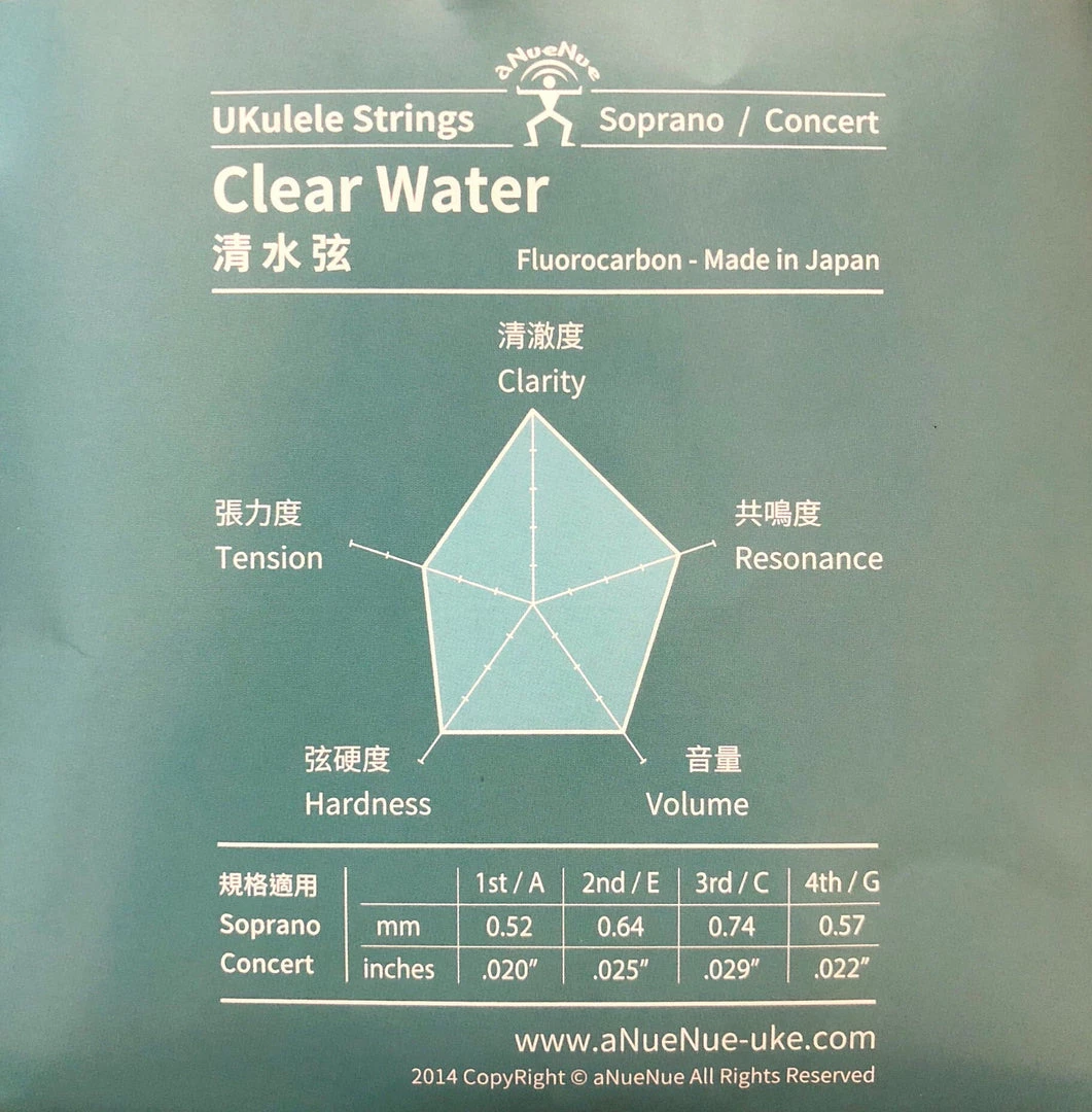 Made of clear fluorocarbon material, string gauge is thinner, light tension great for fingerstyle and strumming, clear treble sounding. Great for beginners. Made in Japan.