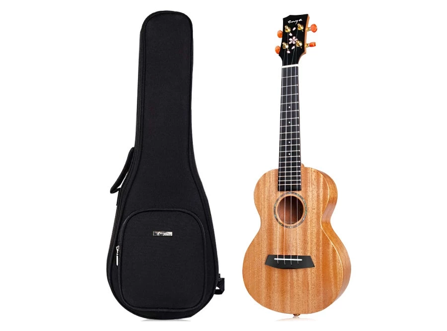 - Strung with Enya ukulele strings (concert) and D’Addario®EJ87T (tenor)