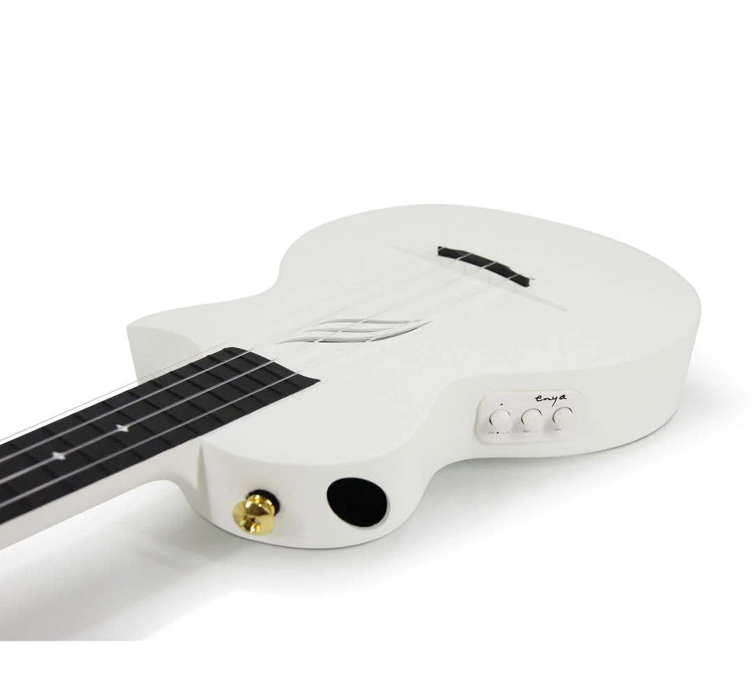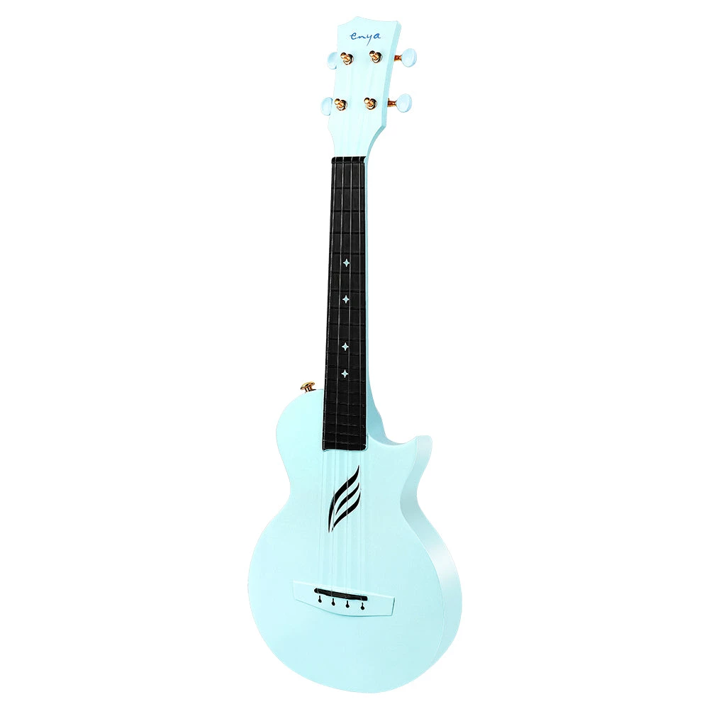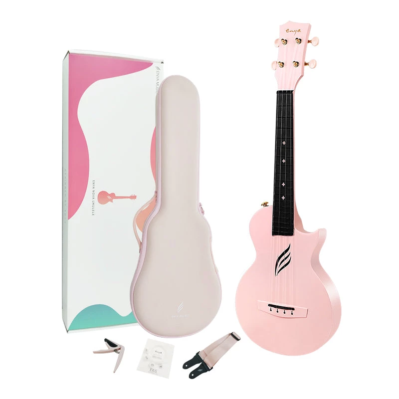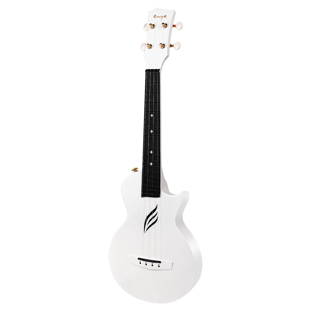 The unique Enya Nova has an eye-popping design and is made of carbon fiber composite. This polycarbonate material will give your ukulele a much brighter sound. The lightweight yet durable construction provides a greater resonance for such a surprisingly thin body! This incredibly resistant material is also waterproof and a breeze to clean. This ukulele is suitable for any level of player who seeks a one-of-a-kind style with the added sonic enhancements of bonded carbon atoms!
