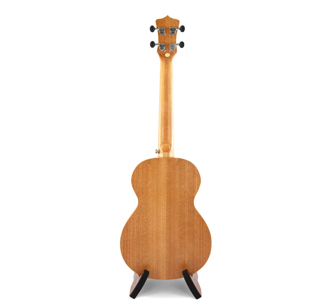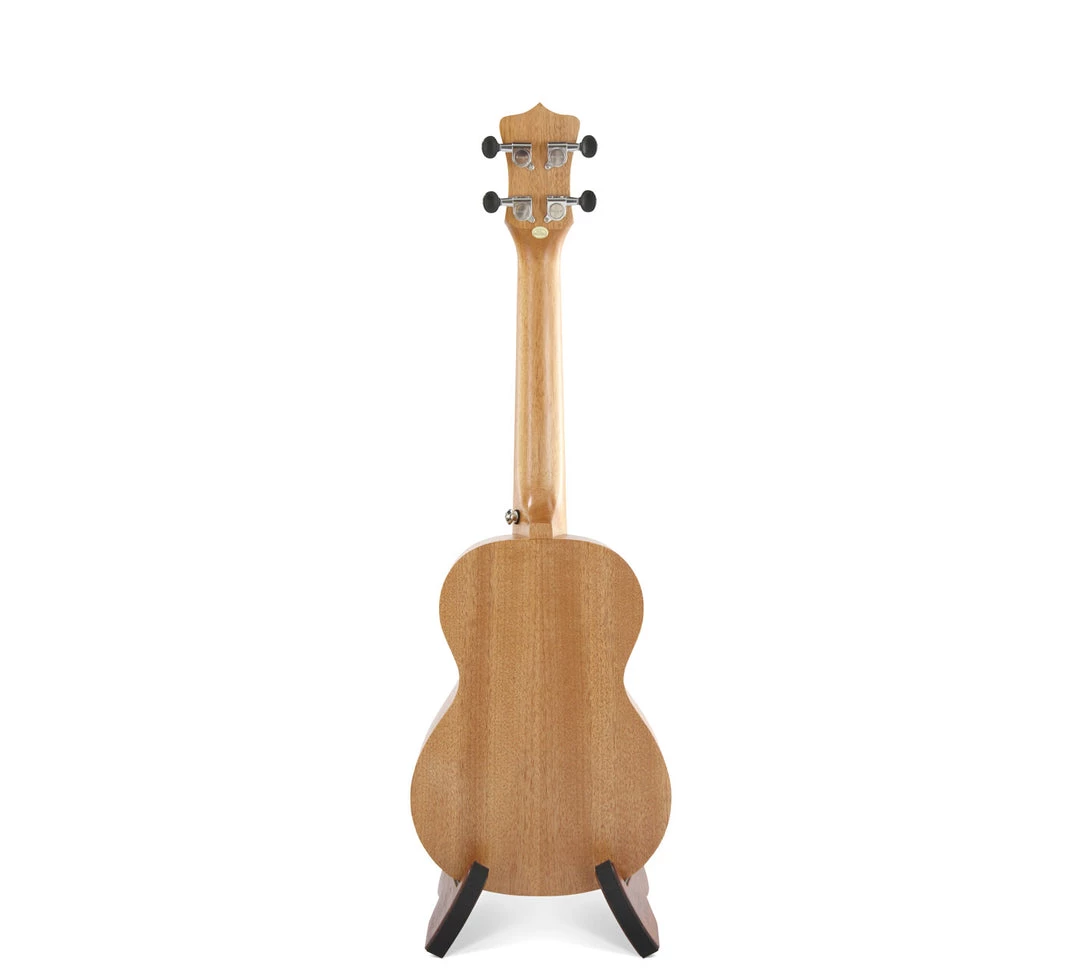 This ukulele features a solid mahogany top with laminated mahogany back and sides. As a tonewood, Mahogany is distinguished by the bright and warm sound it emits. Exquisite workmanship at this attractive price make this ukulele a great purchase or gift. Suitable for beginners.