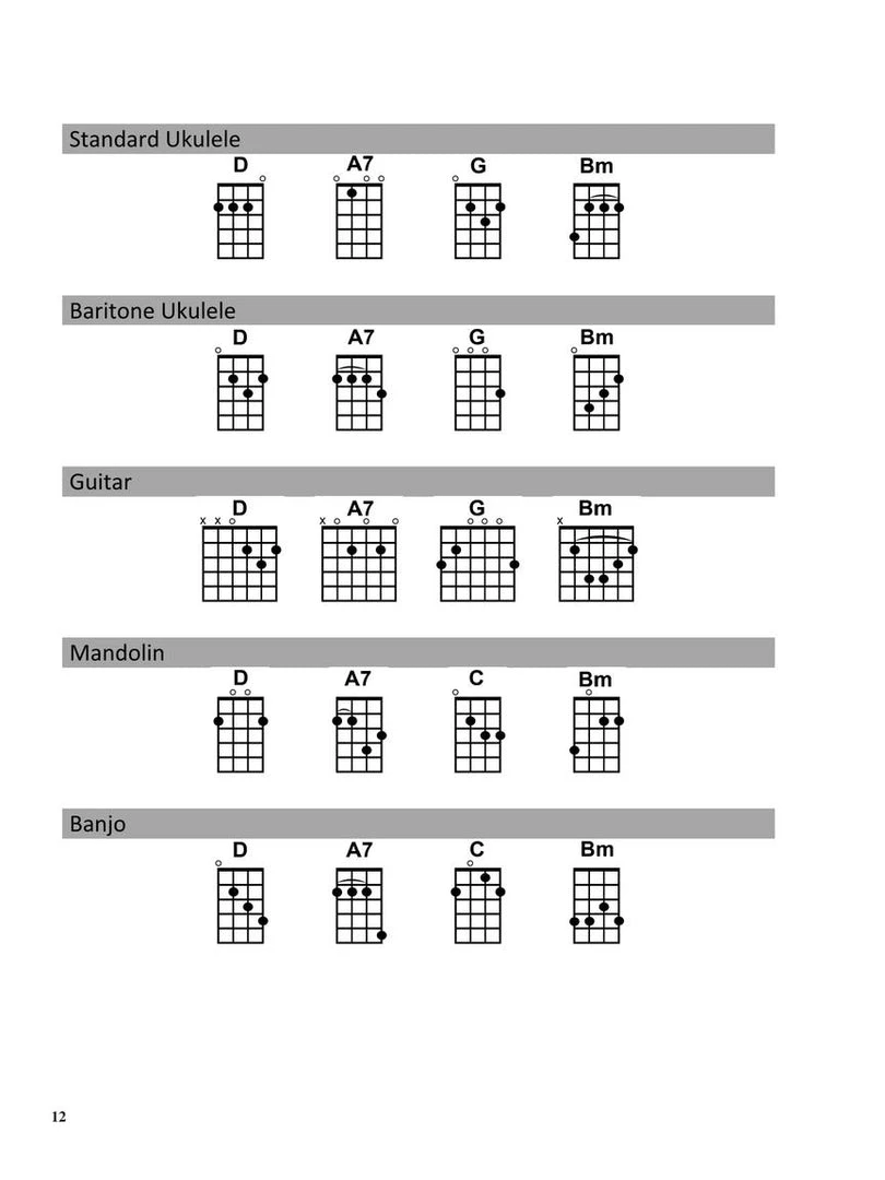 The Strum Together series enables players of five different instruments – or any combination of them – to “strum together” on dozens of great songs. This easy-to-use format features melody, lyrics, and chord diagrams for five popular folk instruments: standard ukulele, baritone ukulele, guitar, mandolin, and banjo. This collection includes 70 classic songs: All I Have to Do Is Dream • Annie’s Song • Back in the Saddle Again • Battle Hymn of the Republic • Do Wah Diddy Diddy • Down on the Corner • Eight Days a Week • Five Foot Two, Eyes of Blue (Has Anybody Seen My Girl?) • Green Green Grass of Home • Hound Dog • I Saw Her Standing There • Knockin’ on Heaven’s Door • The Lion Sleeps Tonight • Morning Has Broken • Ragtime Cowboy Joe • Sloop John B. • Sweet Home Chicago • Tom Dooley • We Shall Overcome • Your Cheatin’ Heart • Zip-A-Dee-Doo-Dah • and more.