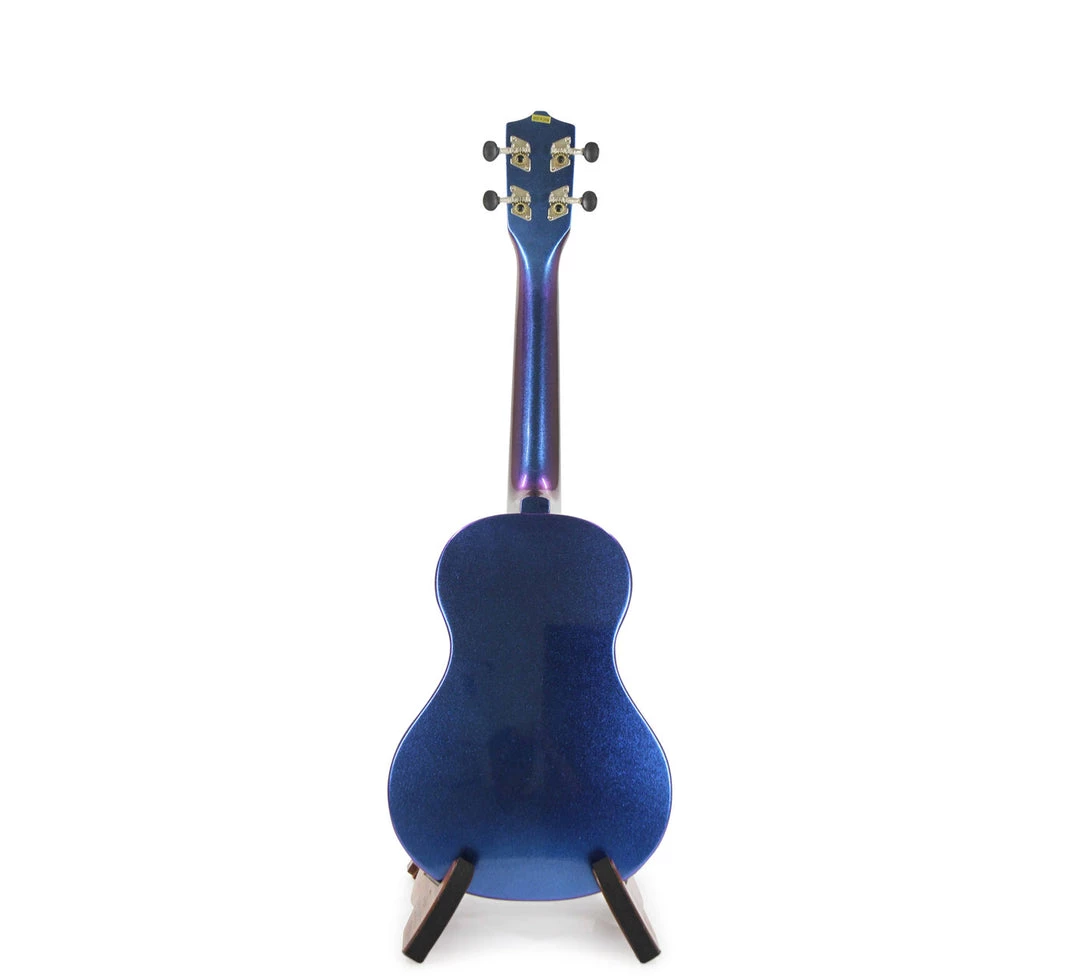 This concert-size Purple Chameleon is a duo-tone special painted ukulele that changes colour (blue-purple) in different lighting conditions.