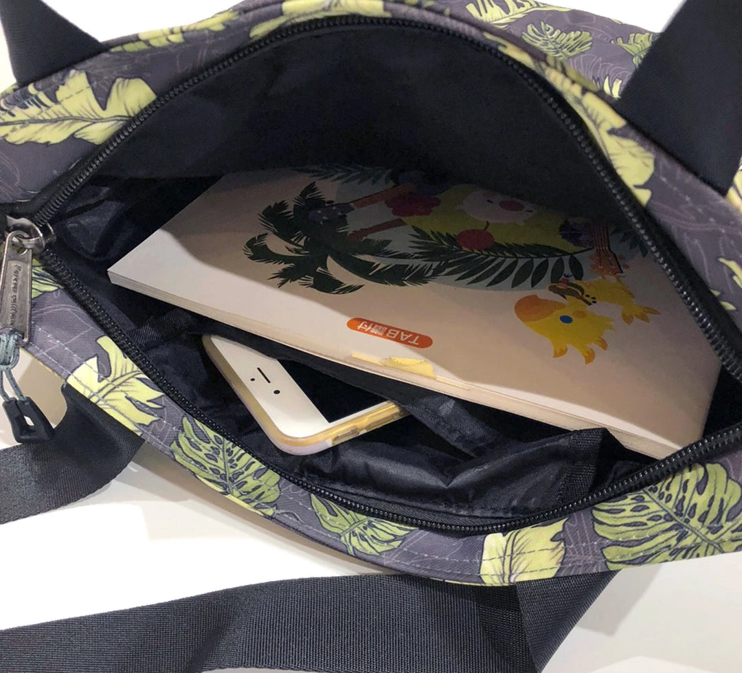 Lined interior with 1 pocket and top zip. Nylon double handles.