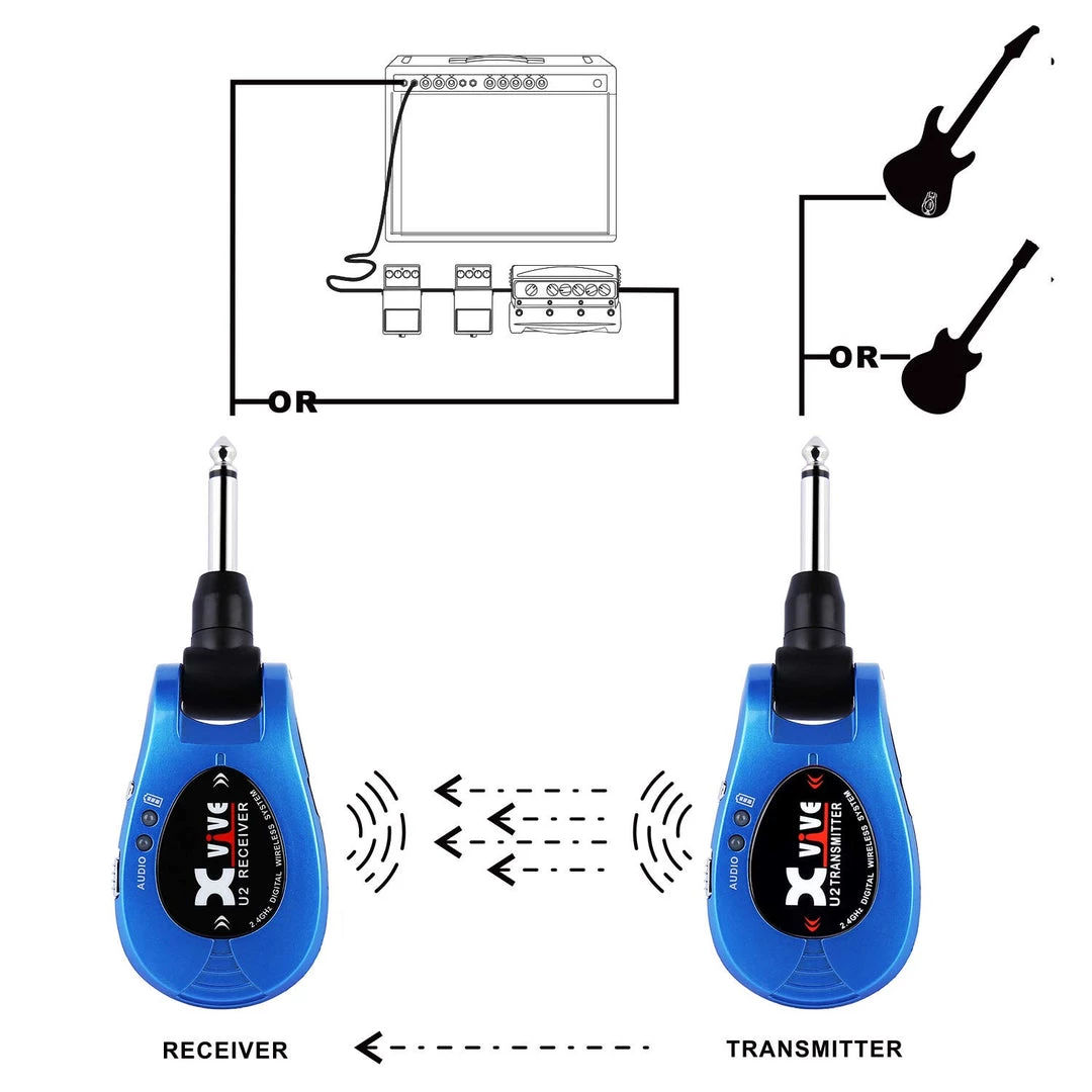 What‘s the best way to avoid interference? Xvive U2 digital wireless systems broadcast in the 2.4GHz band, which successfully avoids interference caused by TV stations, public safety broadcasts, cell phone towers, and other high-powered sources, but we would suggest you keep the system 3 metres away from Wifi router or other wireless system around.